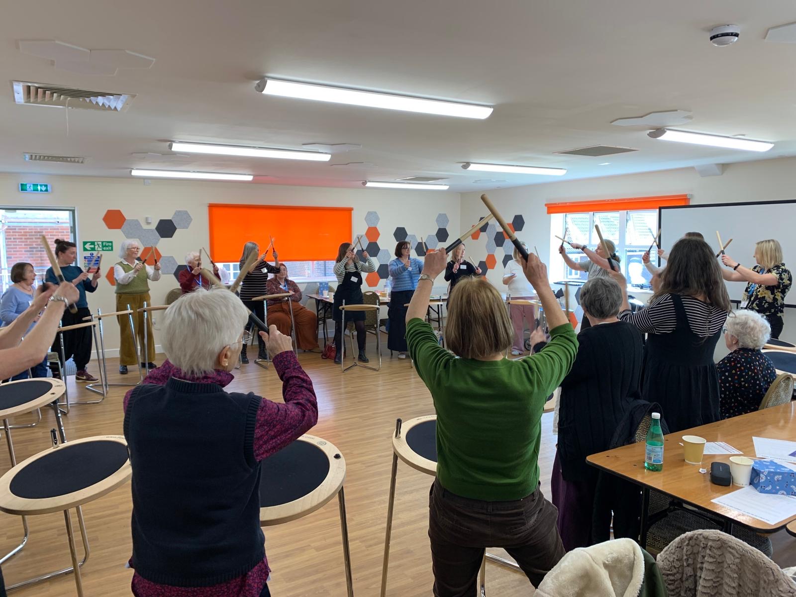 Drums4Health combines gentle physical activity, rhythm and social connection, creating a powerful and uplifting experience for people living with dementia, their carers and the volunteers who support them.